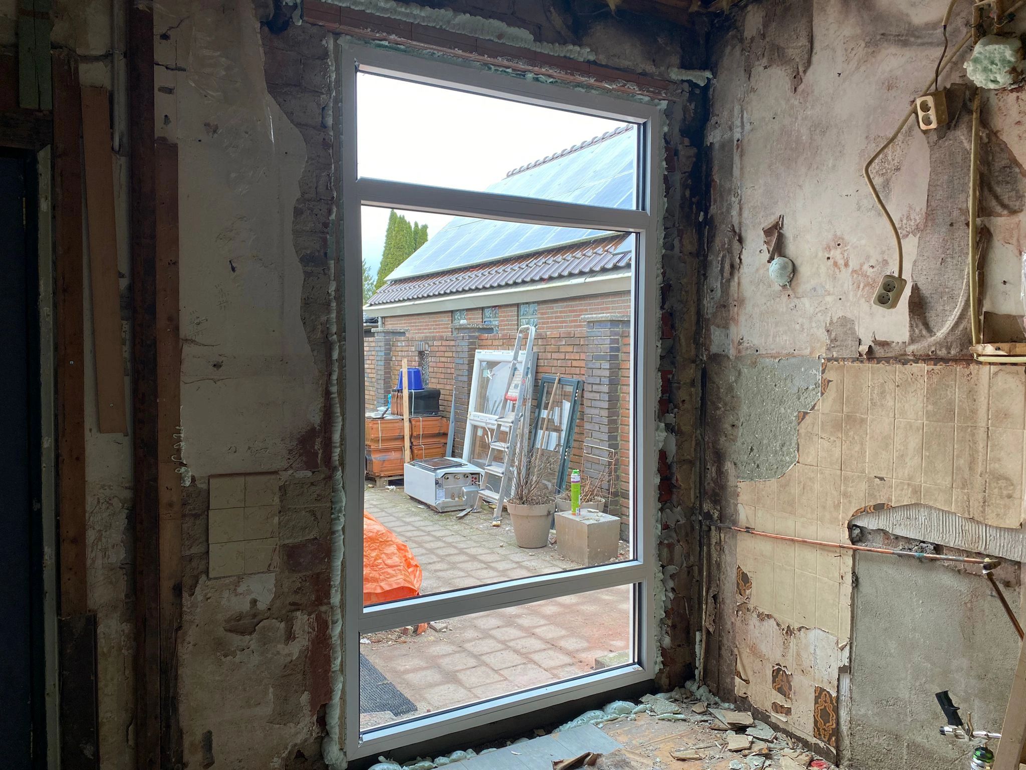kunststof kozijn. Van het weghalen van de muur tot het plaatsen van het glaswerk.